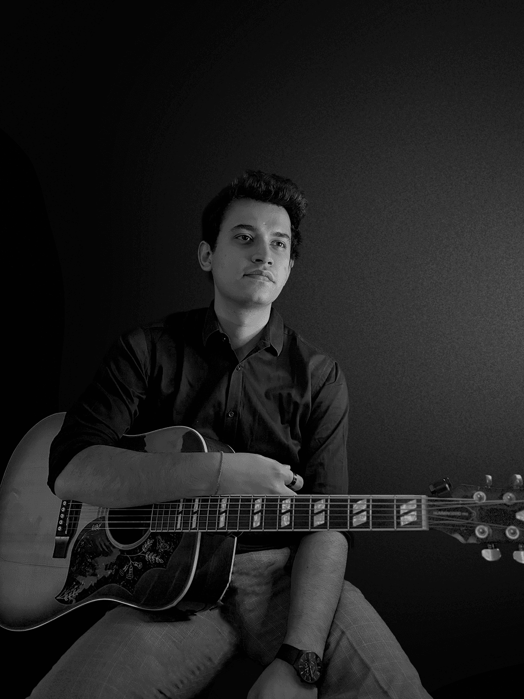 Saranssh Sharma is a singer-songwriter, guitarist, and composer from Delhi, and the founding member of the independent band Kagaz. With close to a decade of live performance experience, he started out as a session musician—playing in the background, learning on the go, and slowly finding his voice through it all.